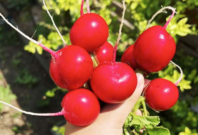 樱桃萝卜皮鲜红而瓤肉白,口感脆爽味鲜美。樱桃萝卜适应性强、易管理,生长速度快,种植30天左右即可采收。北屯科技小院首次试点种植樱桃萝卜产量约350余公斤,亩产增收达50%。