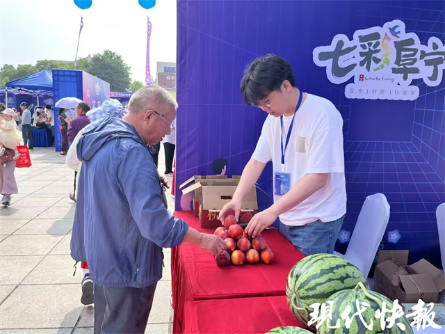 阜宁大糕、益林酱油、硕集卜页、阜宁西瓜、马家荡水产……活动现场,阜宁本地特色农副产品依次摆开,吸引了众多市民前来试吃和购买。“这个茶干吃着真不错,你们店在哪边,下次我要去逛逛。”“这个西瓜是我们阜宁本地的吗?多少钱一斤?”虽然天气炎热,但在展台前,依然有许多市民前来参观品尝,并询问购买方式。