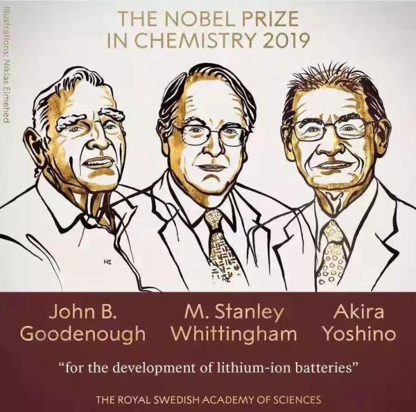 2019年10月9日,2019年诺贝尔化学奖颁给了约翰·B·古迪纳夫(JohnB.Goodenough)、M·斯坦利·威廷汉(M.StanleyWhittingham)、吉野彰(AkiraYoshino),以表彰他们对发明锂离子电池做出的贡献。