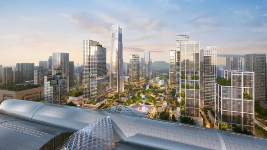 (广州南站商务区核心区中轴景观效果图,广州市房协供图,央广网发)