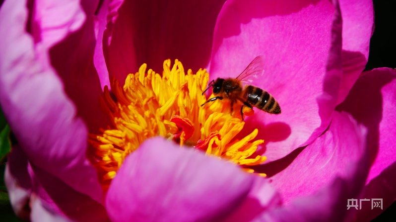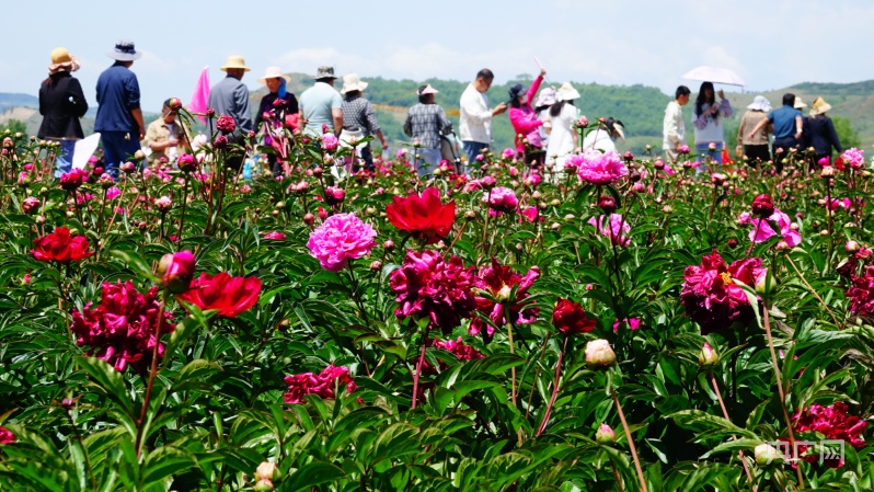 盛开的芍药悠扬的花儿吸引游客(央广网记者张海东摄)