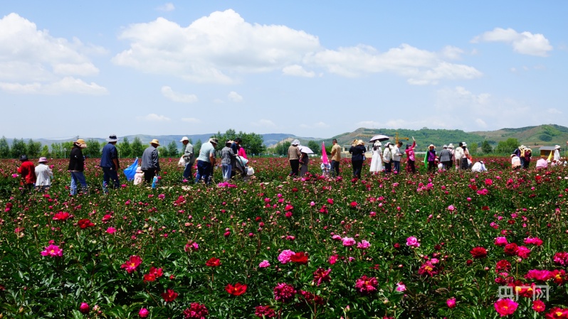 来自纳家村的村民们在芍药园里留影(央广网记者张海东摄)