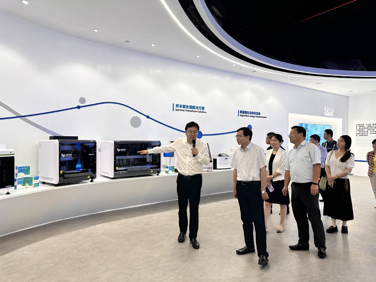 在企业展厅,泰州上市公司协会会长、江苏硕世生物科技股份有限公司总裁王国强向与会嘉宾介绍企业发展历史。从2010年硕世生物成立,获批医疗器械生产许可证,到2017年获评江苏省科技小巨人,2018年获评江苏省瞪羚企业,2019年成功登陆科创板,再到疫情期间勇担社会责任第一时间完成新冠核酸检测试剂盒的研发和生产,积极参与全球新冠抗疫……短短十余年间,硕世生物始终专注体外诊断领域的研发与创新,实现了跨越式发展。数据显示,2022年,硕世生物实现营收55.35亿元,同比增长94.95%;净利润18.28亿元,同比增长53.19%。