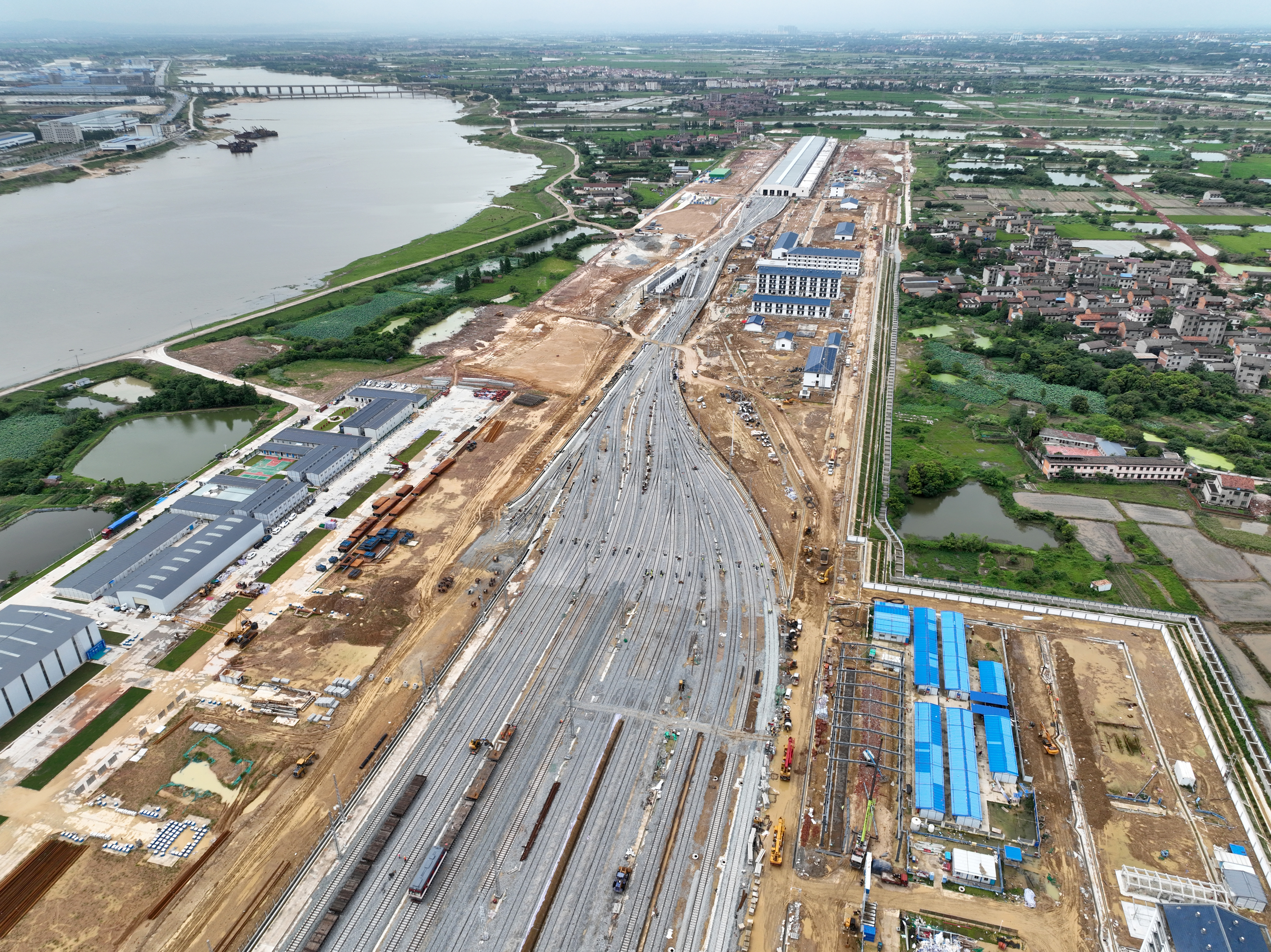 “自去年10月份进场以来,为实现年底开通目标,项目不分昼夜、争分夺秒组织施工生产,先后完成近150万平方米路基土石方、14.3万平方米的站场附属工程以及4.4万平方米的生产及生活附属房屋工程。其中包括动车所内承担动车检修的四线检修库,该单体也是所内面积最大的建筑体,面积约2.6万平方米。”据项目副经理张亮介绍,截至目前,所有工程已基本完工,仅剩部分收边收口及室外场坪工程正在抢抓施工,预计8月初可全部完工,以达到验收条件。