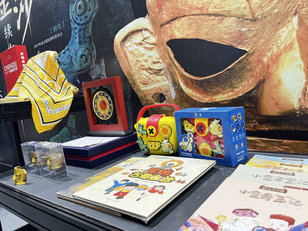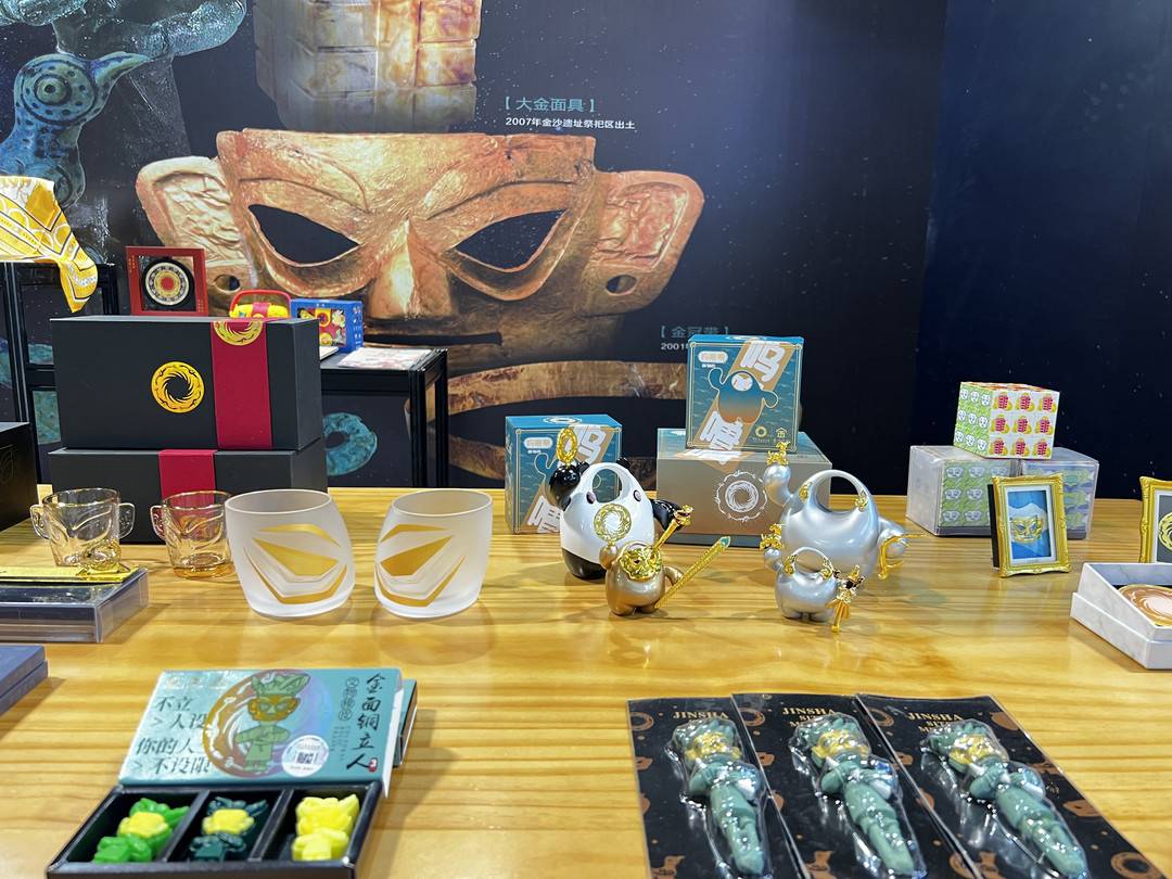 于是,在独具特色的古蜀展位中,“青铜立人”手办、“金沙拾贝”摆件、“双耳面具杯”、太阳神鸟首饰等上百件爆款文创产品、宣传册页及图书以融古贯今的设计巧思、独具匠心的制作工艺,成为最受欢迎的四川元素。