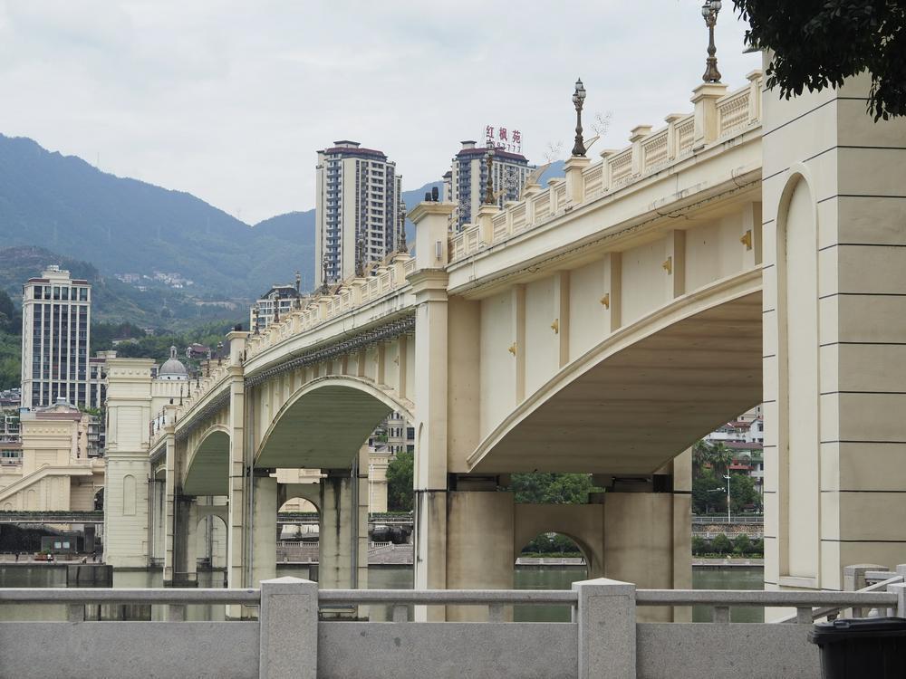 (横跨瓯江的“网红桥”,财联社记者摄)