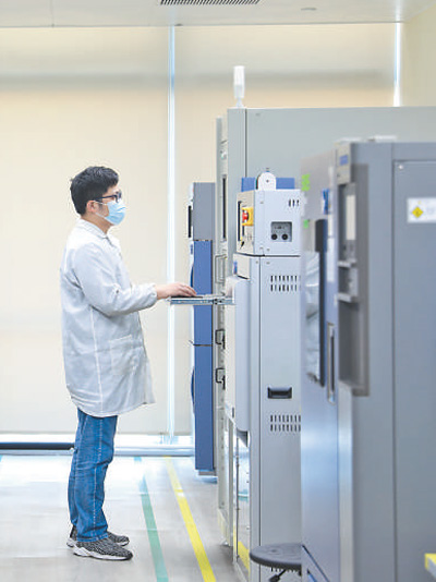珠海镓未来氮化镓功率器件可靠性验证实验室内,工作人员在做实验。