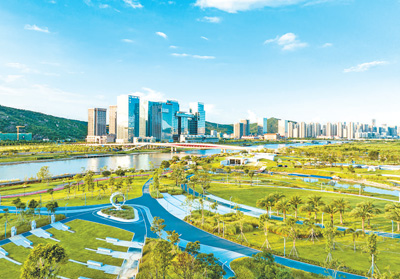 如今的天沐河,被粤澳居民视为“美丽横琴”的绿色“中轴线”。沿着这条碧水清波、草木繁盛的生态长廊,生态群落区、社区公园区等五大区块各有千秋,横卧河面的景观桥“一桥一景”,风格各异的现代建筑群拔地而起,创业谷、孵化中心、科创园区与住宅小区、街道商圈错落相嵌,一水之隔的是澳门旅游塔等标志性建筑。