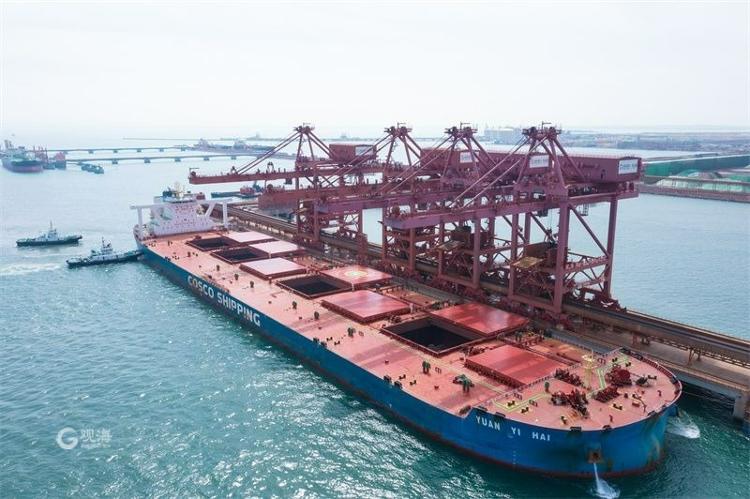此次接卸的“远谊海”轮,船长361.9米、宽65米,载重量37.5506万吨,是董家口港区40万矿石码头接卸的第329条40万吨级大船。该船部分货物需在7月3日前进行国际中转,受天气等因素影响,卸船时间十分紧迫。在海关、海事、边防等单位的支持下,青岛港生产调度指挥中心协同青岛引航站精密部署,克服大雾困难,保证船舶及时靠泊,山东港口青岛港董矿公司全力以赴,积极发挥全流程自动化操作优势,在船舶靠岸后,4台额定卸率3500T/H的世界最大卸船机发挥最大潜能,配合联合智控中心远程自动化操作、自动设备巡查和皮带纠偏保障作业进度。同时,作业全程使用皮带“流程顺启”和“永磁同步变频机”等新技术,有力保障作业效率,充分展现了干散货码头设备自动化改造和数字库场建设的有效成果。