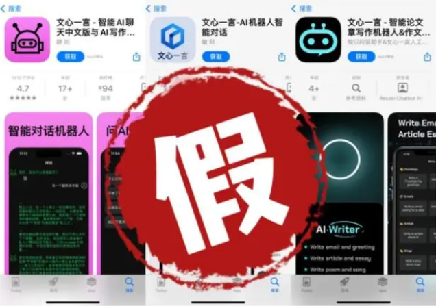 今年3月中旬,百度发布了大语言模型的生成式 AI产品文心一言并开启内测,4月初,百度AI微信公众号发文称,有不法分子通过苹果App store等渠道推出假冒“文心一言”APP。百度已对苹果公司及相关开发者团队发起诉讼。该文章表示文心一言暂未在任何渠道推出官方APP,苹果应用商店和其他应用商店中所看到的所有“文心一言APP”都是假冒的,所谓的“文心一言收费下载”、“文心一言付费会员”“文心一言内购激活码”等都是骗局。