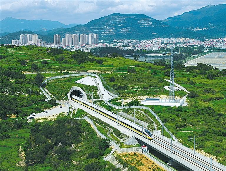 6月29日,试验列车以单列时速420公里、相对交会时速840公里,通过海尾隧道。(资料图片)