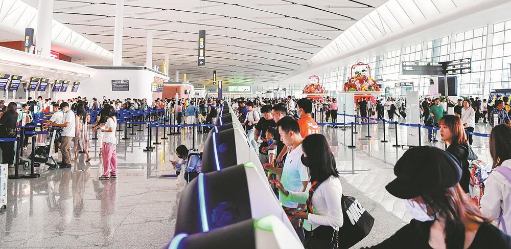 与此同时,天府国际机场严把服务质量关增派保障力量,加强服务指引,合理调配资源,推出国内航班过夜旅客提前候机服务,主动为特殊旅客、首乘旅客、错走旅客等重点群体提供帮助,密切关注安检区、值机区等关键流程节点,加强乘机信息告知力度,优化地面交通方式接驳流程,确保旅客舒心、放心、顺心出行。