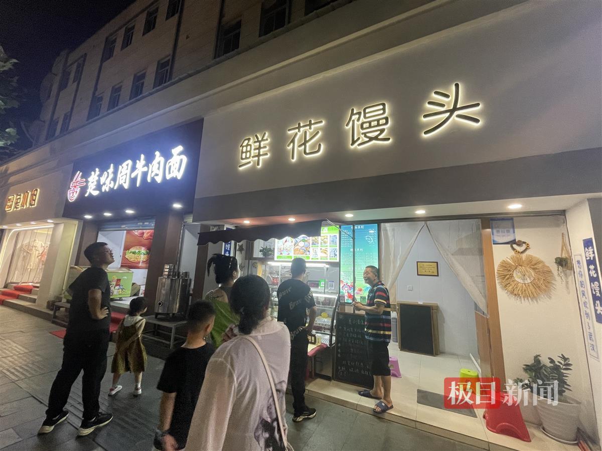 在武汉美食街区粮道街过个早,随后往长江边走,去打卡过江轮渡,是不少旅游者制定的武汉旅游攻略。在这段人流密集的路上,有一家名为“鲜花馒头”的店铺,吸引了不少游客的目光。