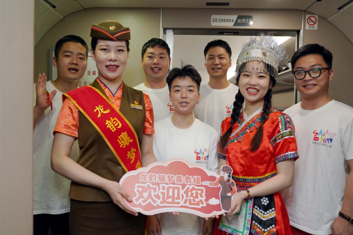为确保高铁列车顺利开行,武铁十堰车务段、襄阳客运段加强与文旅、交通等部门联系,为旅客们提供方便。武铁十堰车务段加大当地文旅局和旅行社的走访,介绍精品旅游路线,满足当地市民乘高铁外出观光旅游的需求;汉十高铁十堰东、武当山西、谷城北站提前制定组织方案,为旅行团、学生游客等开辟进出站绿色通道、组织专人服务、专人引导,保证游客安全出行、舒心体验;担当乘务工作的襄阳客运段为旅客们准备了首发纪念品,列车员穿上苗家民族服饰,与旅客们在车厢内合影留念,并邀请旅客在“山城到山城 时差五小时”的首发签名版上签名,列车上满载欢声笑语。