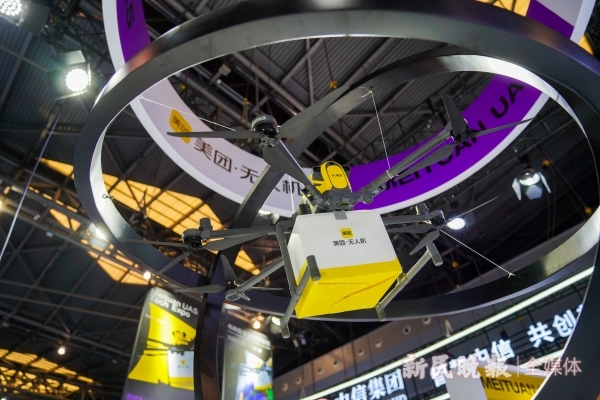 图说:美团发布第四代无人机,最大载重2.5千克,最大配送半径5千米陈梦泽摄