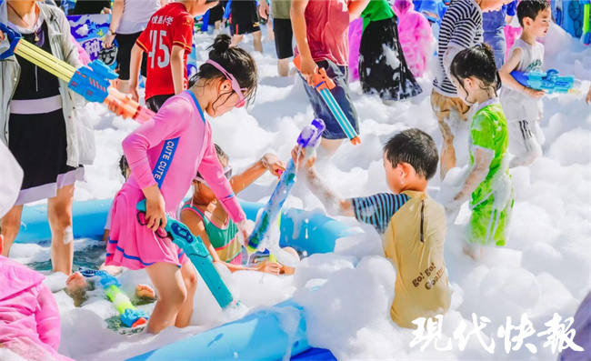 做足“水”文章升级“趣”清凉7月8日,千人水枪大战、趣味捉泥鳅捞金鱼、泼水大狂欢、水上皮划艇、泡泡嘉年华、非遗打铁花、小丑杂技表演……10余大主题狂欢盛宴火力全开,这个收藏孩子们一整个夏天笑容的嘻水“王国”、天然避暑胜地——渔湾景区,实现了从山上到山下,从白天到黑夜的全天候避暑“趣”游玩体验。