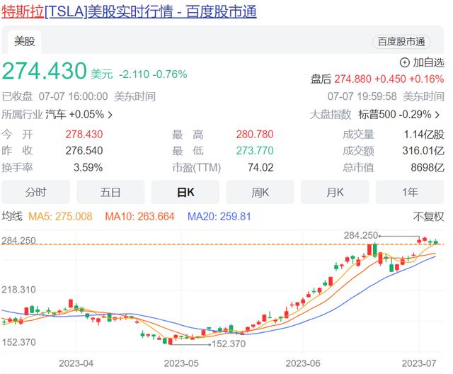今年以来,特斯拉股价一路狂飙。截至美国时间7月7日收盘,特斯拉总市值为8698亿美元(约合人民币6.28万亿元),今年以来股价涨超120%。