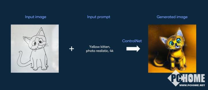 除此之外,高通还展示了手机端ControlNet生成图片的体验,其同样使用骁龙手机通过端侧AI算力实现。ControlNet能够让生成的图片高度受控,能够利用预先提供的图片特征,来精准控制生成图片。比如简单的手绘一张猫咪草图,然后给AI相应的文字描述,之后AI就会以草图为标准,生成符合TAG的图片。