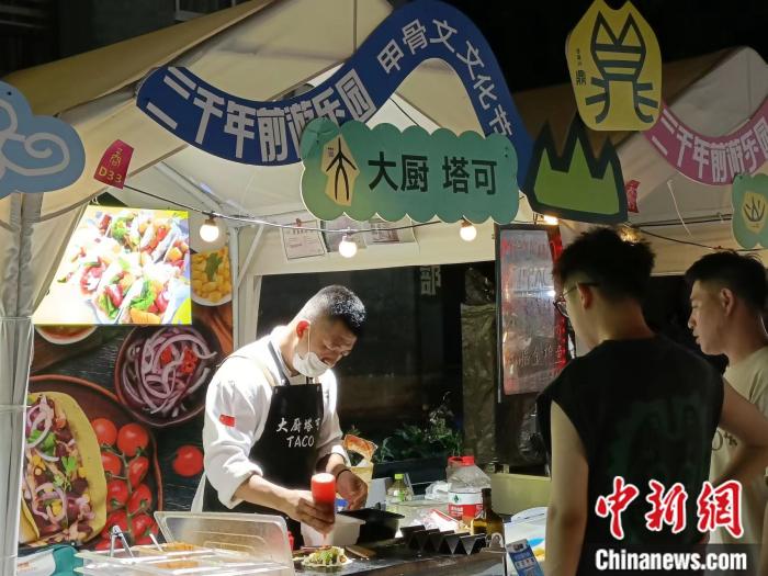 中新财经了解到,该夜市举办时间为6月9日-7月9日,每天下午4点-晚上10点,为沉浸式甲骨文主题夜市。尽管打着甲骨文艺术节的旗号,但在涵盖小吃、饮品、手工饰品、互动游戏等各色卖点夜市上,游客们依然用行动投票出了他们最感兴趣的环节——排起长队的,无一不是特色小吃。