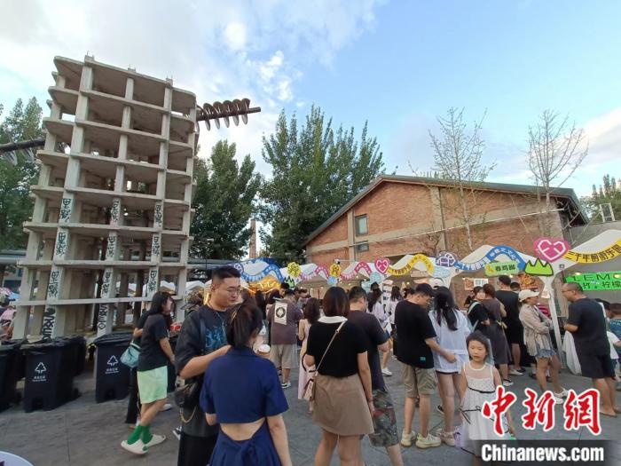 7月8日晚上8点,尽管天色已经暗下来,但北京的地表温度仍在30℃以上。在798艺术区南门,一处方形场地被分割成几排街道,200余家商铺聚集在这里。在临时搭建的白色摊位前,挤满了游客。