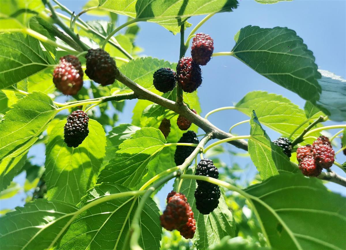 德昌县属亚热带高原季风气候,年均日照总时数达2356小时,年均气温17.7℃,无霜期300天以上,光照充足,气候温暖,在这样的土地上长成的桑葚,糖分沉淀充分,果肉饱满而又紧密,口味清甜,轻轻一咬,嘴里便绽开许多汁水。