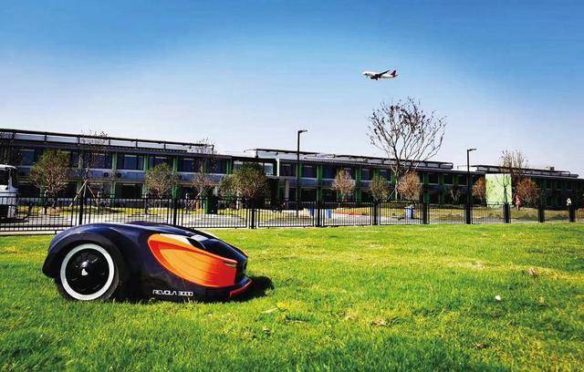 在江苏园博园宽阔的草坪上,一个外形酷炫的机器人缓缓前进,伴随着它富有规律的行进路线,周边草地恢复了整洁美观。