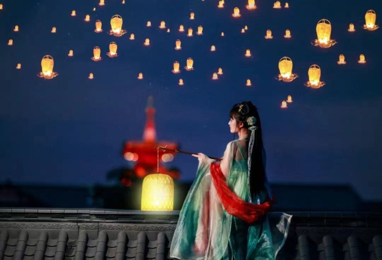 夜晚的拈花湾同样绚丽多彩,近千架无人机于花海中腾空飞起,一盏盏孔明灯被瞬间点亮,吸引了众多的消费者前去观光。同时,景区还特别在暑期推出了夜游服务,让大家可以乘坐画舫游船,沉醉在湖光山色的夏夜之中。