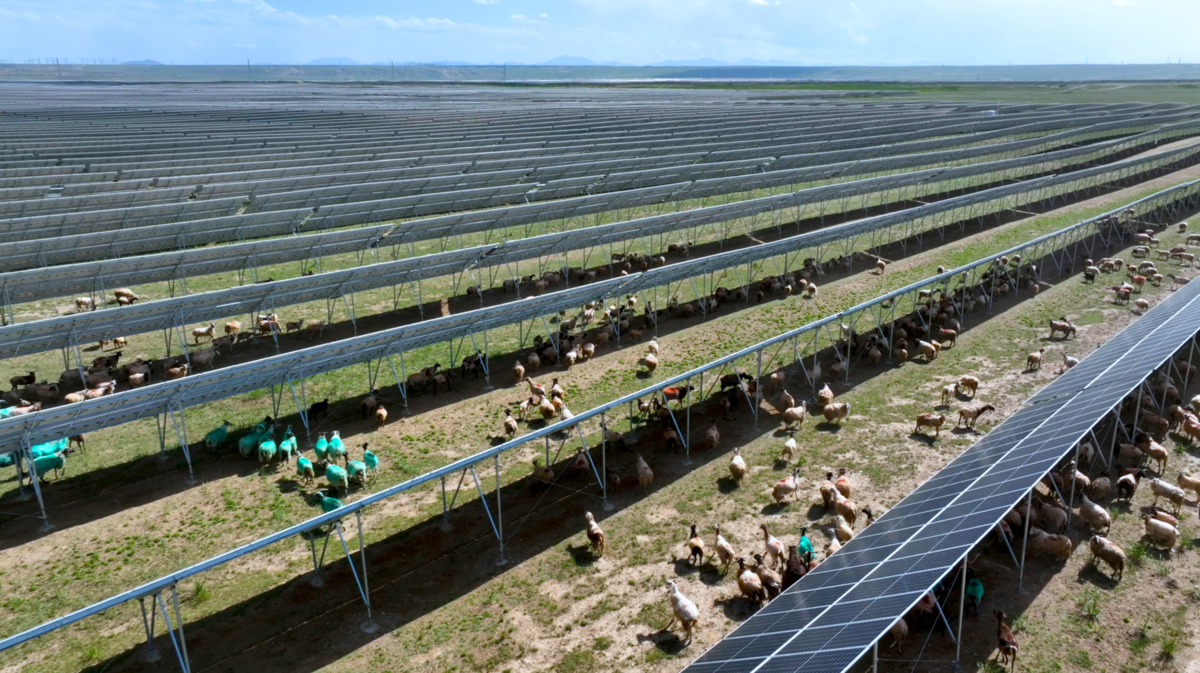 光伏板应运而生出了“光伏羊”。羊群啃食生长过盛的草地,减少了杂草对电池板的遮挡,提高光伏发电效率,板上发电、板下牧羊,不仅节省了牧民的饲料成本,而且减少了光伏园除去杂草的人工成本,实现了光伏企业和农牧民双向受益。同时,通过羊粪施肥、养膘出栏,更好地保持了园区生态良性循环发展,当地农牧民养殖藏羊的收益也得到了提高。