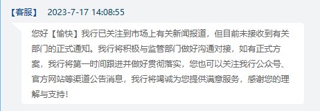 17日,中新财经记者咨询工商银行、建设银行、农业银行、招商银行、汇丰银行等多家银行的客服人员或营业网点贷款经理,得到的回复均大同小异:暂没有接到正式通知,将积极做好沟通对接,如果有正式方案将第一时间跟进并贯彻落实。