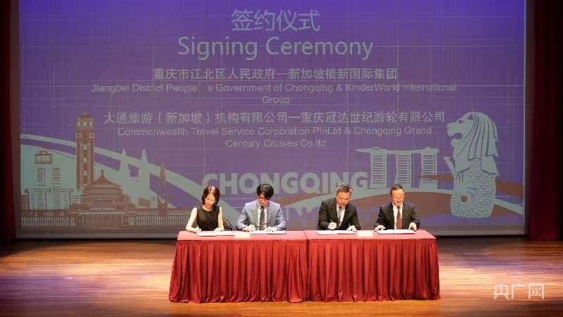 推介会上举行了合作项目签约仪式。重庆市江北区人民政府副区长兰廷春与新加坡楷新国际集团首席投资官施国顺就楷新国际文化旅游开发(重庆)有限公司落地重庆市江北区签订投资协议;大通旅游(新加坡)机构有限公司中国产品部副总经理崔昕与重庆冠达世纪游轮有限公司营销总监金渝鹏签订游轮服务采购合同。