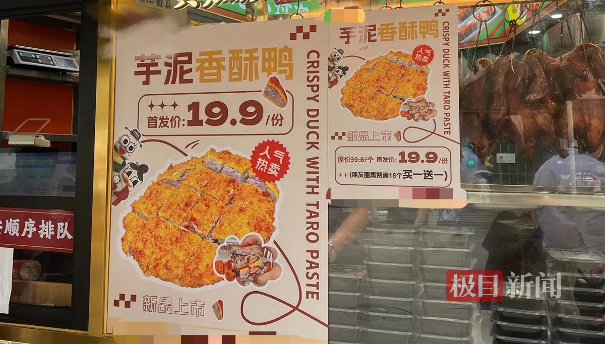 极目新闻记者走访发现,本月以来,武汉一些烤鸭店、小吃店迅速推出网剧同款“芋泥香酥鸭”。南湖一家烤鸭店店员介绍,每天卖出400多份,顾客需要排队抢购。在江汉路步行街,近半个月内新开了6家“芋泥香酥鸭”门店,加盟商称,单店营业额每天至少在15000元。