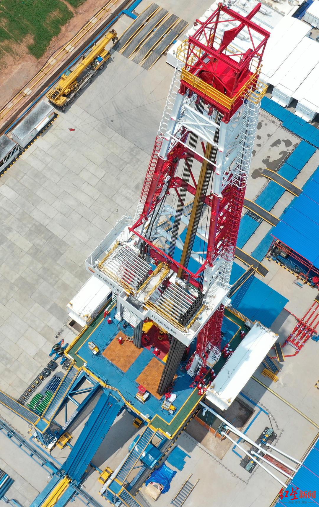 在四川广元市剑阁县姚家镇青山环抱的一处低凹内,70余米高的钻机几乎与山头齐平。7月20日10时30分左右,与钻机上部驱动装置相连的钻杆开始转动,钻头随之旋转,与之接触的岩石出现裂痕逐渐破碎,全球首口地质条件最复杂、钻井难度最高的万米科探井——深地川科1井在四川盆地开钻。这是人类继宇宙探索外,开启地心探索的又一壮举,标志着我国油气勘探开发工程技术与装备水平进入万米深层时代。