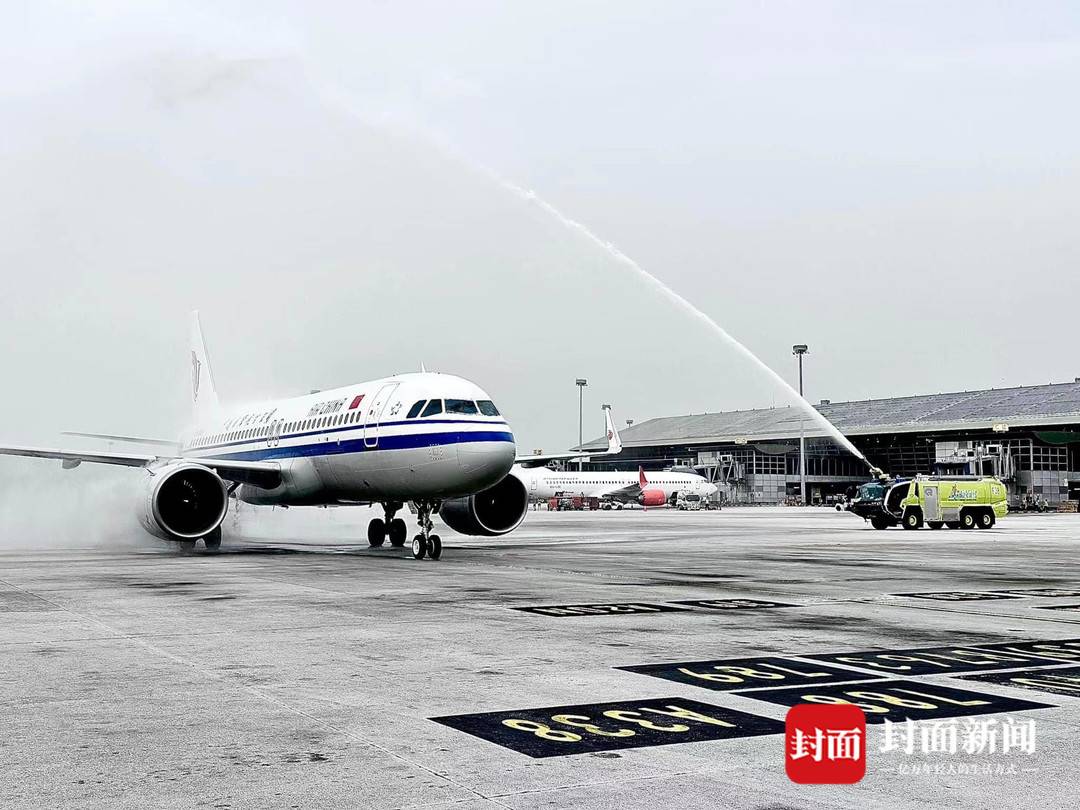 7月19日13点32分,国航一架空客A320飞机搭载149名乘客腾空而起,飞向2000多公里外的马来半岛。经过4个半小时的飞行,飞机于当地时间18点平稳降落吉隆坡国际机场,标志着国航成都天府-吉隆坡航线正式开通。