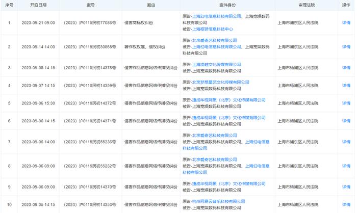 此外,捷成华视网聚(北京)文化传媒有限公司、北京梦想星艺文化传媒有限公司、上海凌越文化传媒有限公司等,也因侵害作品信息网络传播权纠纷将上海宽娱数码科技有限公司诉至法庭。根据公示信息,相关案件均于9月份开庭审理。
