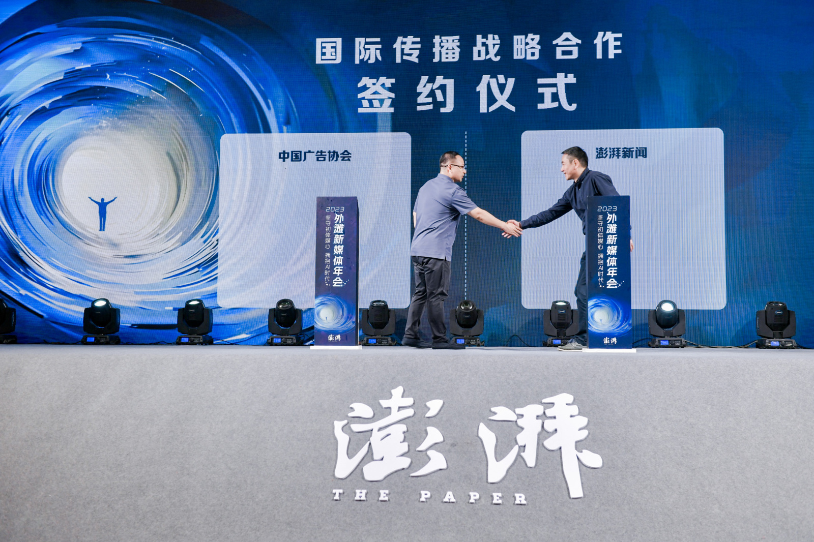 澎湃新闻对内夯实内容生产,对外加强国际传播。在成立九周年之际,澎湃新闻推动国际传播战略合作,出席本次签约仪式的嘉宾是国广惠能投资公司合伙人、中国广告协会国际传播工作委员会执行主任陆文龙,澎湃新闻常务副总编辑李智刚。