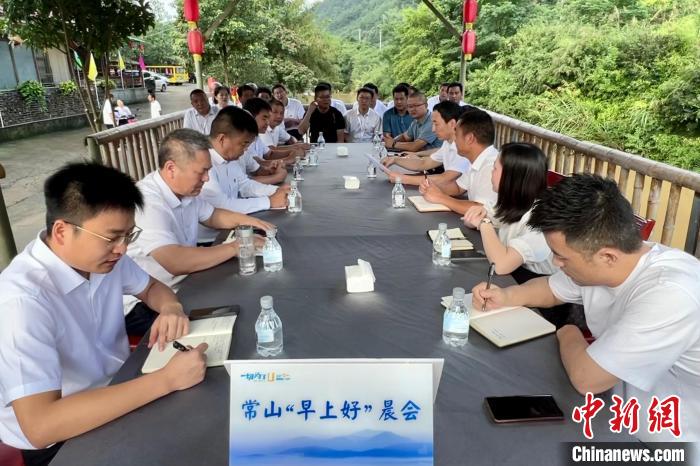 7月23日,“早上好”晨会在浙江省衢州市常山县田蓬村召开。 中新社记者董易鑫摄