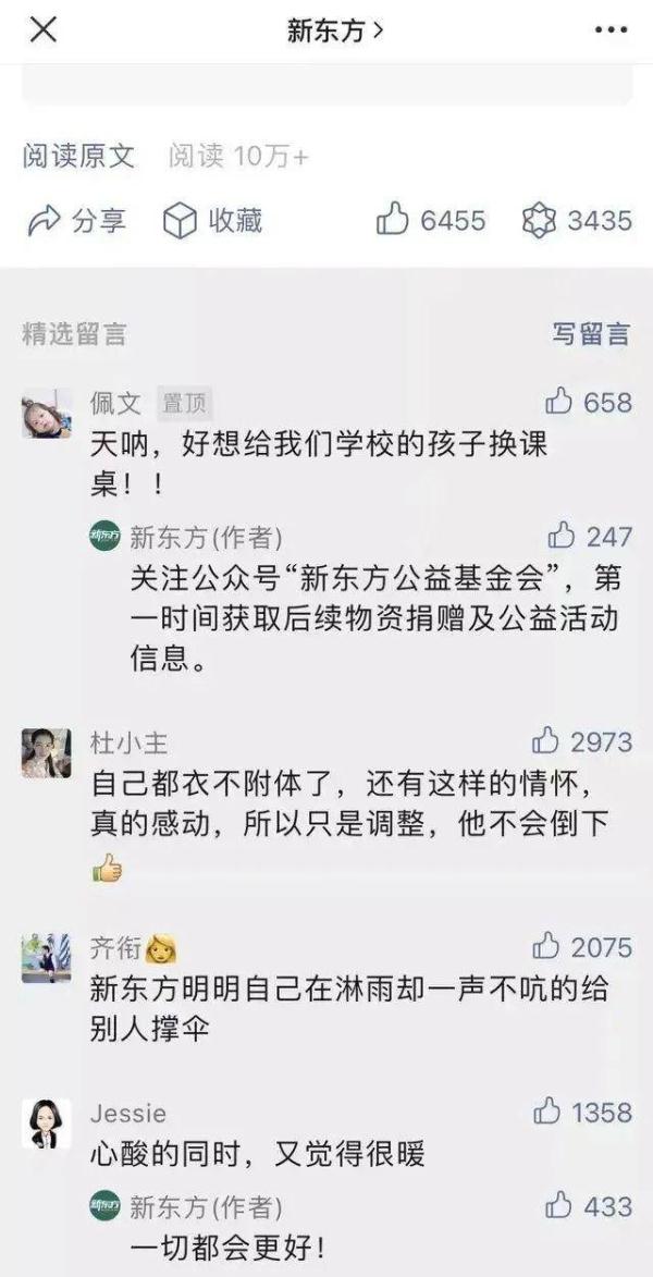 2021年开始实行的“双减”政策,让深耕教育行业的新东方产生了不小的改变,身为其创始人,俞敏洪的压力可想而知。然而,2021年11月4日,俞敏洪却在朋友圈转发了一篇名为《当一辆红色卡车,驶向远方》的文章,并附文:“教培时代结束,新东方把崭新的课桌椅,捐给了乡村学校,已经捐献近八万套。”