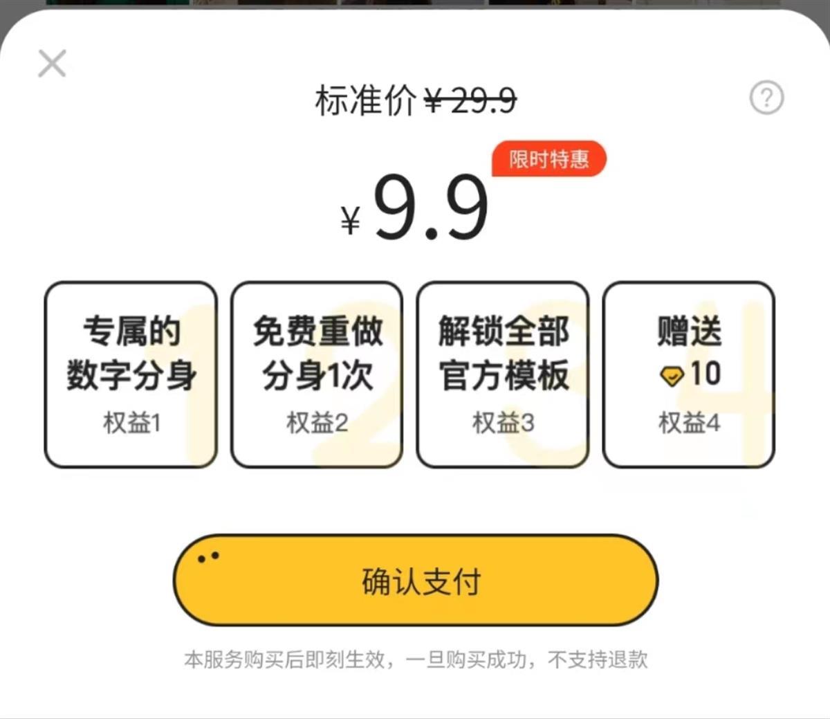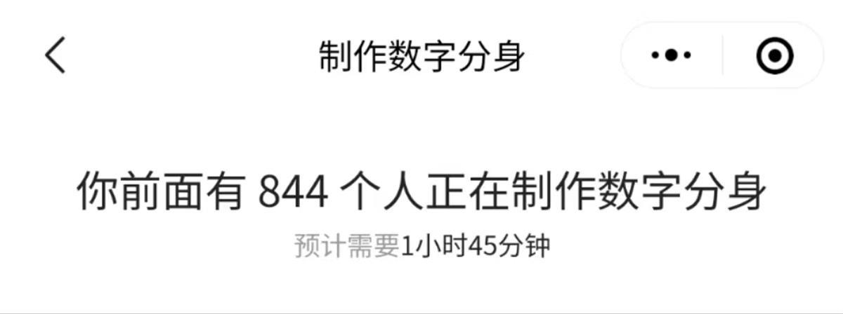在付款9.9元后,系统提示:“你前面有844个人正在制作数字分身,预计需要1小时45分钟”。