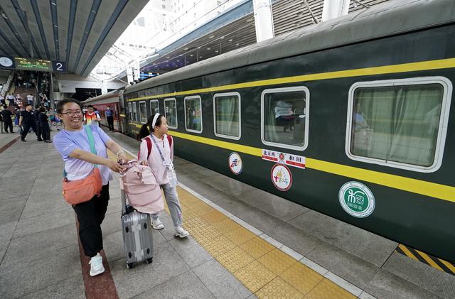 7月24日,乘坐旅游专列的游客准备登车。新华社记者 李欣 摄