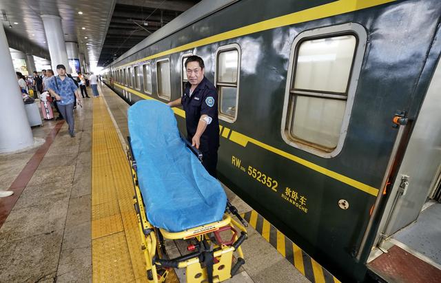 7月24日,旅游专列的医护人员将医疗设备运上列车。新华社记者 李欣 摄