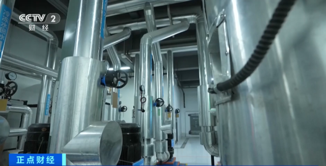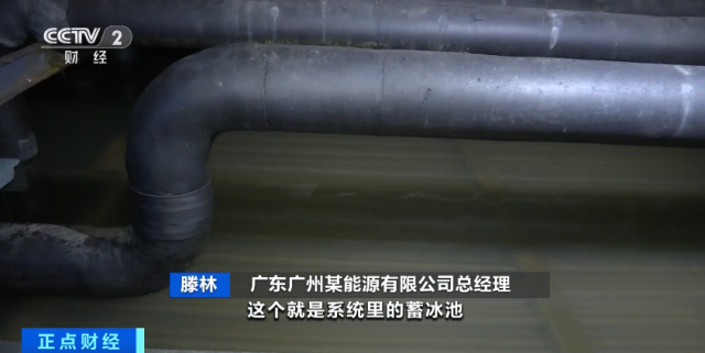 广东广州某能源有限公司总经理滕林:这个就是系统里的蓄冰池,在夜间低谷电价的时候,蓄出来一定量的冰。白天像现在用冷的时间,高温水进来以后,把冰融掉,水温降下去,再通过二次泵送到用户侧,去冷却用户的空调系统。