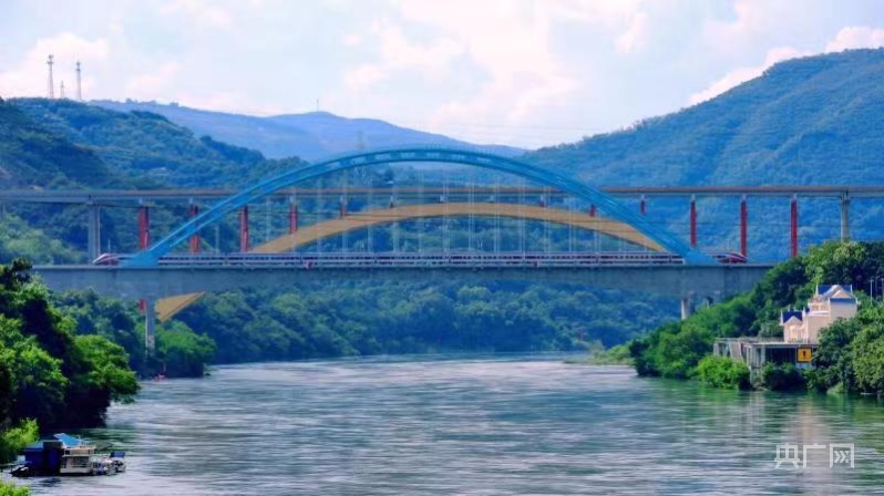 “澜沧号”通过景洪澜沧江特大桥(央广网发杨紫轩摄)