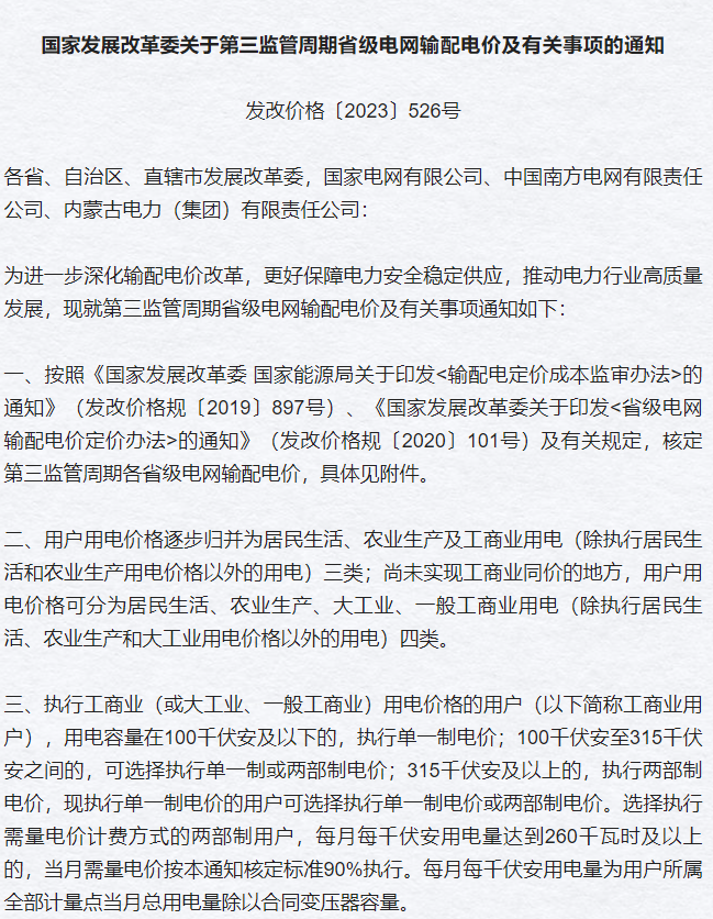 根据今年5月国家发展改革委印发的《关于第三监管周期省级电网输配电价及有关事项的通知》(以下简称《通知》),6月1日起实行新的电价方案。《通知》中明确,新电价方案将用户用电价格逐步归并为居民生活、农业生产及工商业用电(除执行居民生活和农业生产用电价格以外的用电)三类,大型充电站的用电被划归到了工业用电中。区别于民用电和农业用电,工业用电的价格较高。