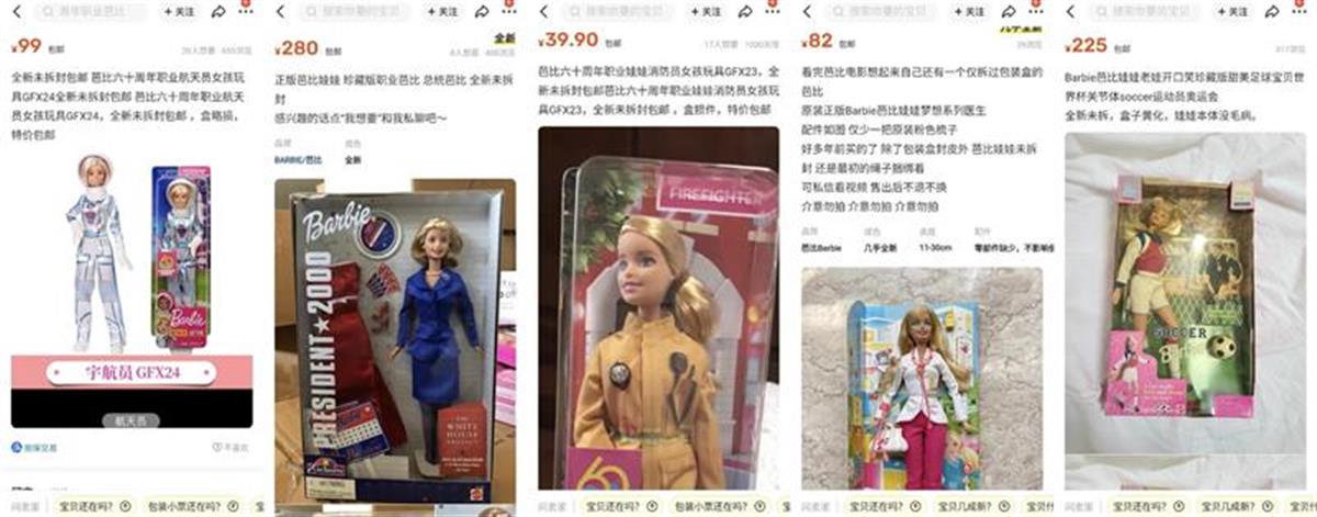 一位湖北武汉的95后买家表示,《芭比》上映首日她就去看了,随后几天还经常会想起电影的镜头,想起了自己小时候玩芭比娃娃的场景。于是,她在闲鱼搜了搜,想看看有没有小时候玩的同款芭比,一边搜索,思绪就不自觉地闪回到电影中的场景,“发现同款还不少。”