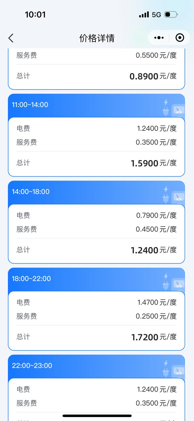 一般情况下,中午时间段以及下班后到深夜前的时间段,充电费用最高。这两个时间段的充电高峰,恰是因为不少网约车司机利用午餐时间充电,以及下班后私家车主进入“补能时间”。