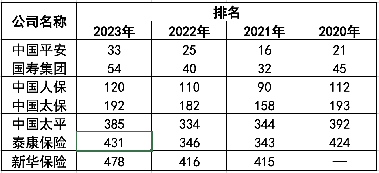 《财富》世界500强排名,以公司年度收入和利润为主要评定依据。具体来看,此次入选的中国保险公司包括中国平安、国寿集团、中国人保、中国太保、中国太平、泰康保险、新华保险。