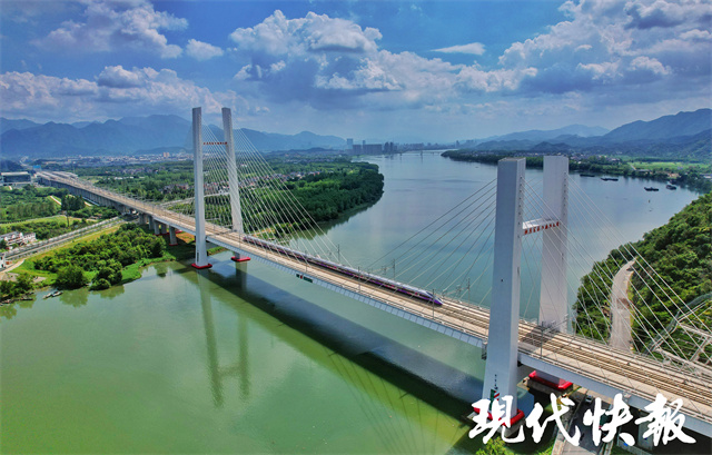 △8月4日下午,试乘列车经过富春江特大桥周围摄