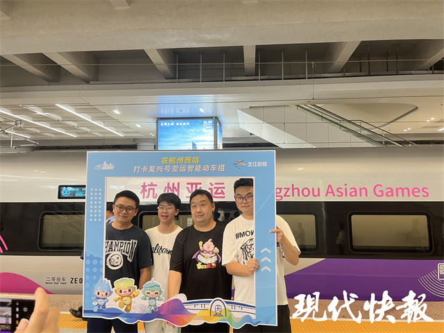 8月4日是杭州第19届亚运会倒计时50天,专为杭州亚运会打造的复兴号亚运智能动车组列车(以下简称“亚运列车”)迎来首次试乘体验活动。当天12时40分,由活动主办单位组织邀请的近百名媒体、嘉宾从杭州西站登乘G55318/9次亚运列车,在近120分钟的试乘行程中沉浸式体验列车行驶品质、亚运氛围营造、车辆外观内饰、车内科技元素、乘务礼仪展示等,深入了解亚运列车的文化基因、靓丽形象、科技配置和服务功能。