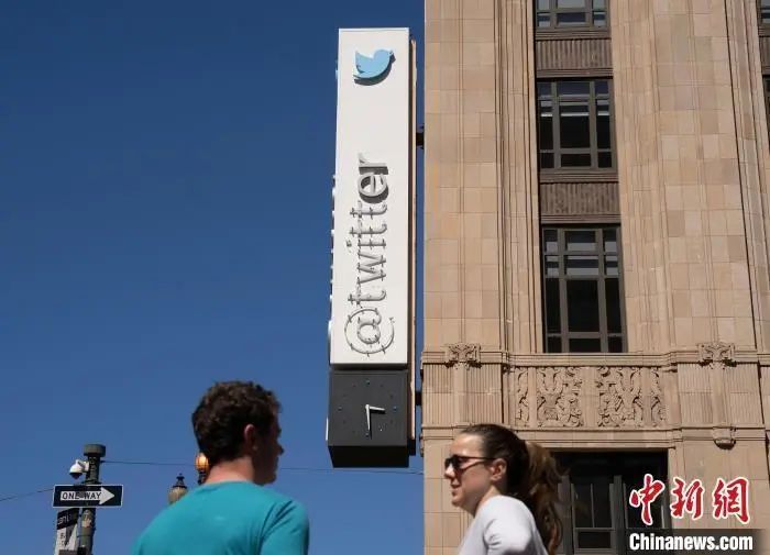 当地时间7月24日,美国旧金山推特总部大楼上的公司标识已被部分拆除。中新社记者刘关关摄