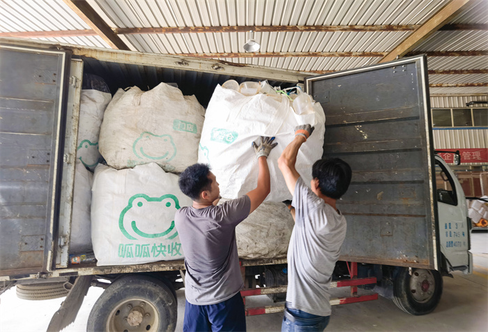 厢式车将大量外卖塑料垃圾收集运送至呱呱快收绿色分拣中心